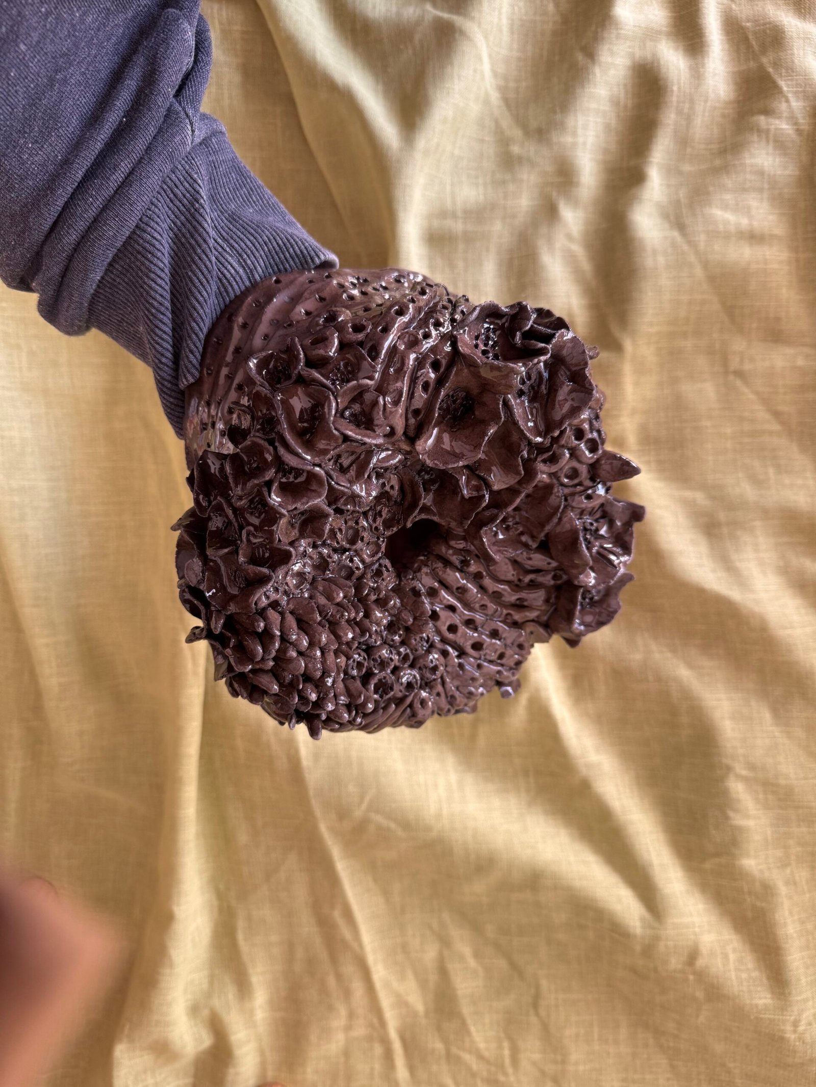 El Arrecife Ningalo es una pieza de cerámica en negro profundo de 19cm de diámetro , con una abertura central que realza su forma y lo convierte en un objeto magnético y lleno de carácter.